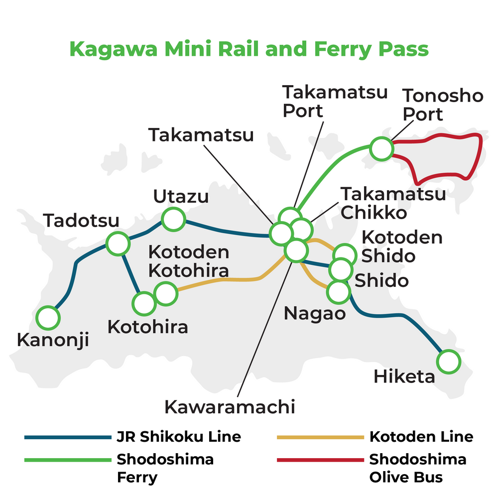 Perfect for short trips within Kagawa Prefecture, this pass allows unlimited travel within the Kagawa area for 2days.