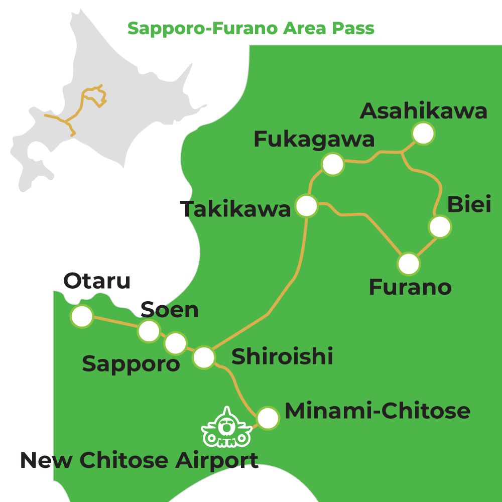 Nieograniczone przejazdy w wyznaczonym obszarze i wygodne podróżowanie między lotniskiem New Chitose a Sapporo, Otaru, Furano, Biei i Asahikawa.