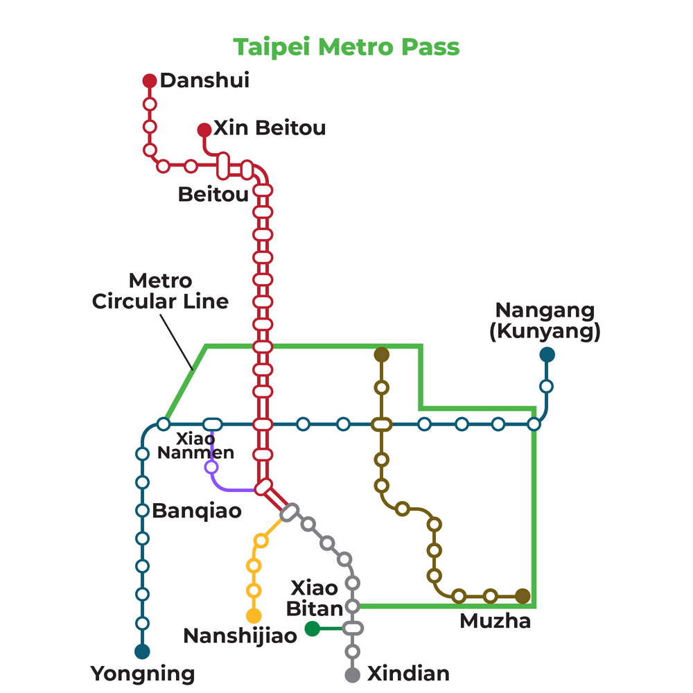 • Valid on all Taipei Metro lines Includes the New Taipei Metro Circular Line