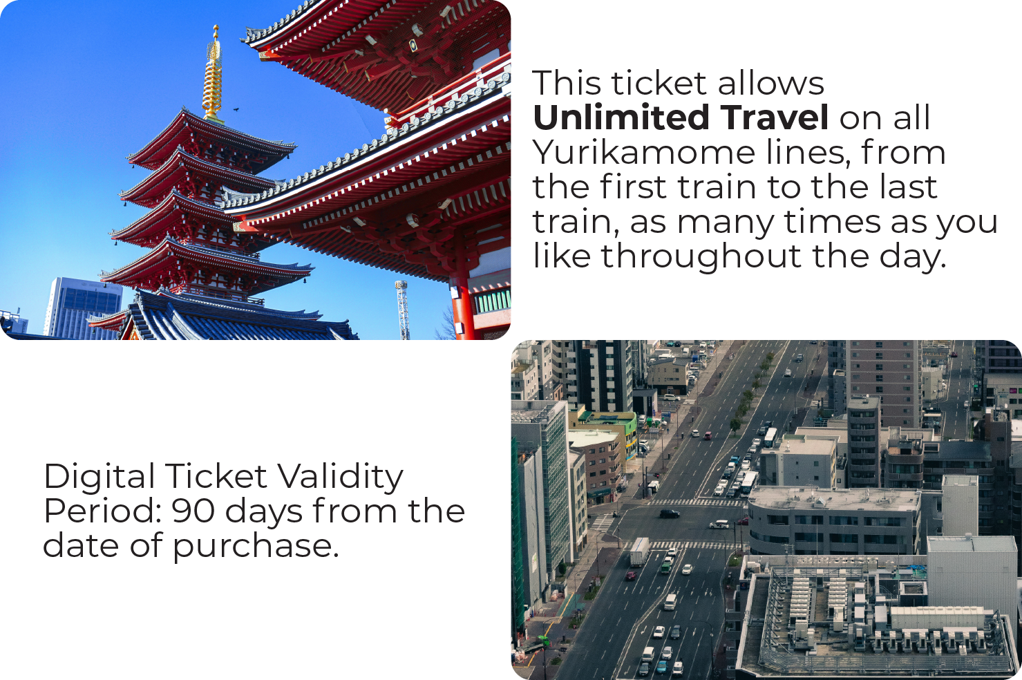 Unlimited travel on all Yurikamome lines from the first to the last train.