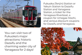 The Dazaifu and Yanagawa Excursion Pass is a convenient 2-day travel package offered by Nishi-Nippon Railroad (Nishitetsu), designed for tourists exploring Fukuoka Prefecture in southern Japan.